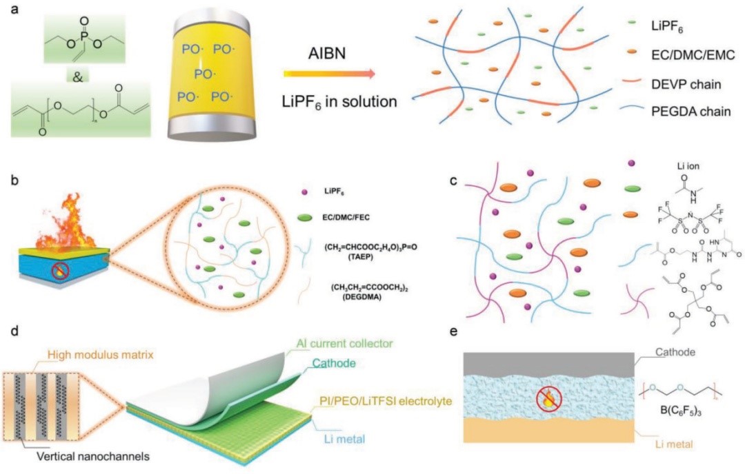 锂离子电池以其便携性、高能量密度和可重复使用性而在当今世界得到广泛使用。在极端条件下,锂离子电池会漏液、燃烧甚至爆炸。因此,提高锂离子电池的安全性成为人们关注的焦点。研究人员认为,使用固态电解质代替液态电解质可以解决锂电池的安全问题。由于固体聚合物电解质价格低廉、加工性能好、安全性高,受到越来越多的关注。然而,聚合物电解质在极端条件下也会分解和燃烧。此外,由于锂金属负极表面电荷分布不均匀引起的短路会导致电池热失控。因此,聚合物固态电池的安全性仍然是一个挑战。